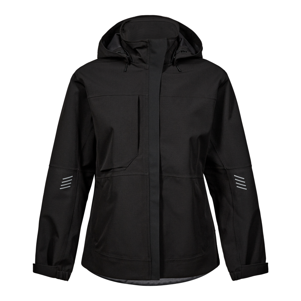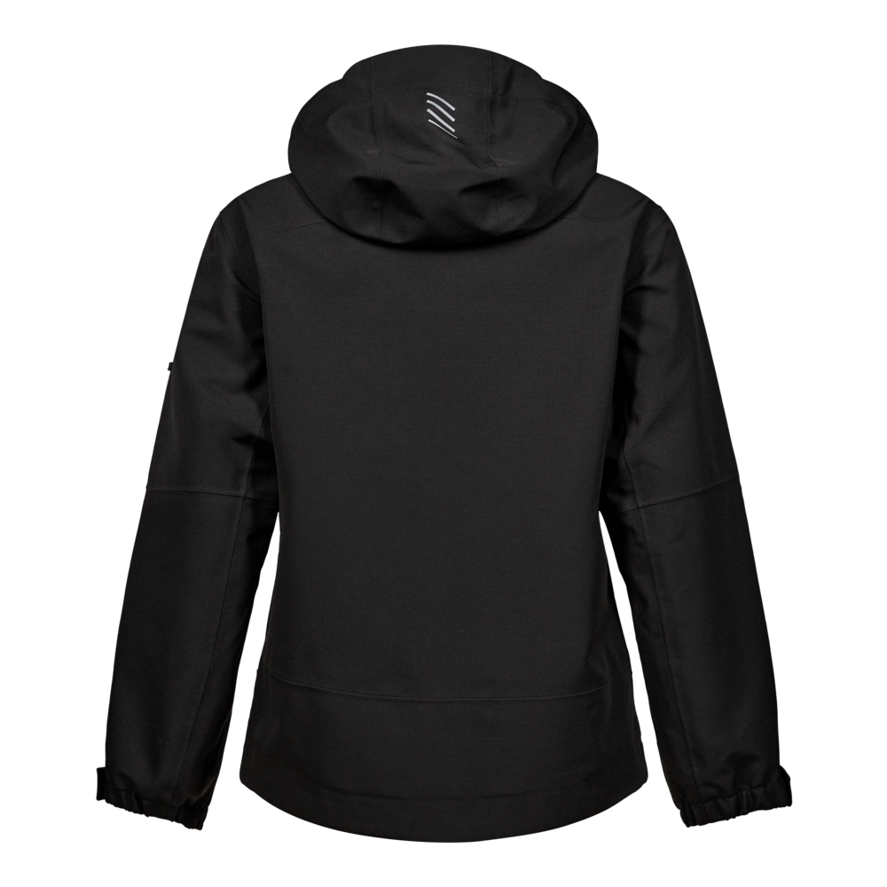 Denne skaljakke til damer er designet med fokus på funktionalitet og komfort. Den er fremstillet i Ripstop med mekanisk stretch for øget bevægelighed. Jakken er både vand- og vindtæt og har tapede sømme for ekstra beskyttelse. For øget komfort har jakken en blød og vindbeskyttende inderkrave. Den praktiske og aftagelige hætte gør jakken yderst anvendelig i mange forskellige arbejdssituationer. Jakken har desuden skjult lynlås foran med en smal stolpelukning som beskytter mod ridser. De mange praktiske lommer giver sikker opbevaring, herunder en rummelig brystlomme og to sidelommer med lynlås samt en praktisk inderlomme med velcrolukning. En D-ring i højre sidelomme gør det nemt f.eks. at fastgøre f.eks. ID-kort. For at sikre en perfekt pasform har jakken elastik og velcrojustering nederst ved ærmerne, så den kan tilpasses individuelt. Refleksprint på ærmerne og ryggen øger synligheden i mørke omgivelser, mens det forlængede bagstykke yder ekstra beskyttelse af lænden. Der er ligeledes god plads til firmaprofilering.