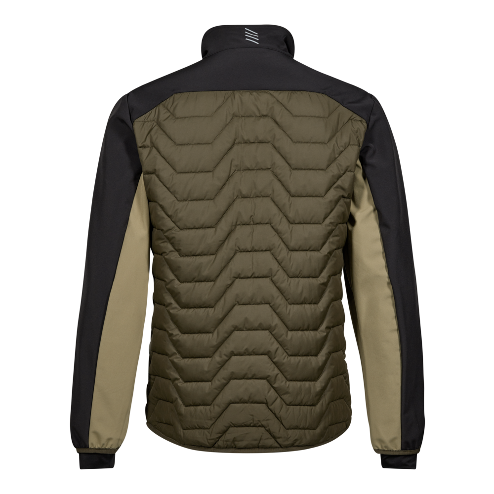 Denne smarte jakke er en perfekt kombination af funktionalitet og fleksibilitet. Det let quiltede design der er kombineret med strækbar softshell på ærmer og bærestykke, giver øget bevægelighed og en optimal pasform. For øget komfort har jakken en blød og vindbeskyttende inderkrave. Jakken har en praktisk lynlås i front og flere rummelige lommer f.eks. en brystlomme og to sidelommer begge med lynlåse. Elastik afslutning i ærmer og bund, giver en tæt og behagelig pasform, mens velcrojusteringen nederst på ærmerne gør det nemt at tilpasse jakken. Refleksprint på både krave og ærmer giver øget synlighed. Jakken er desuden designet så der er mulighed for firmaprofilering.