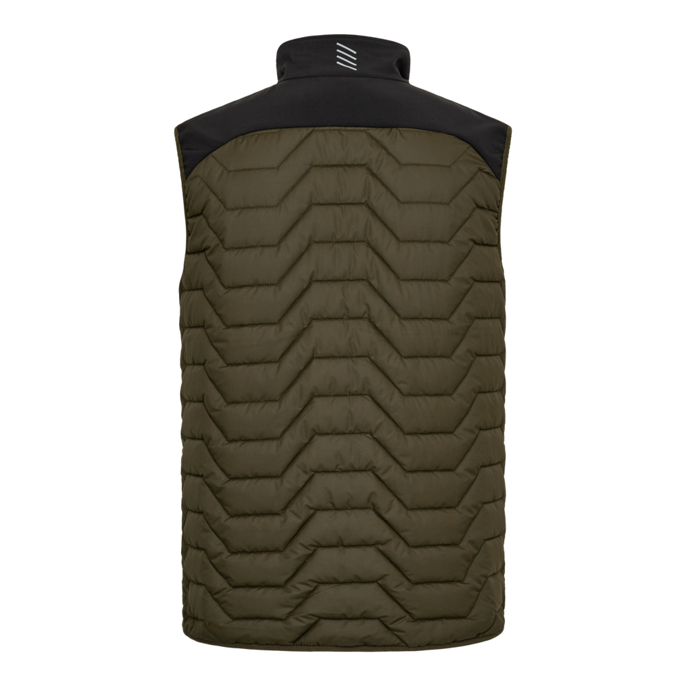 Denne smarte og praktiske vest i et let quiltet design er en perfekt kombination af funktionalitet og fleksibilitet. Strækbar softshell på bærestykket, giver øget bevægelighed og en optimal pasform. For øget komfort har vesten en blød og vindbeskyttende inderkrave. Vesten har en praktisk lynlås i front og flere rummelige lommer f.eks. en brystlomme og to sidelommer begge med lynlåse. Elastik afslutning ved krave, ærmegab og bund, giver en tæt og behagelig pasform. Refleksprint på kraven giver øget synlighed. Vesten er desuden designet så der er mulighed for firmaprofilering.