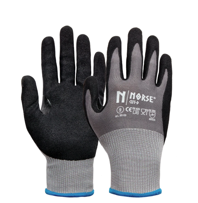 Komfortable og åndbare handsker i grå med sort belægning. Handsken har en god pasform, komfort og med en meget fin fingerfølelse for denne type handske.