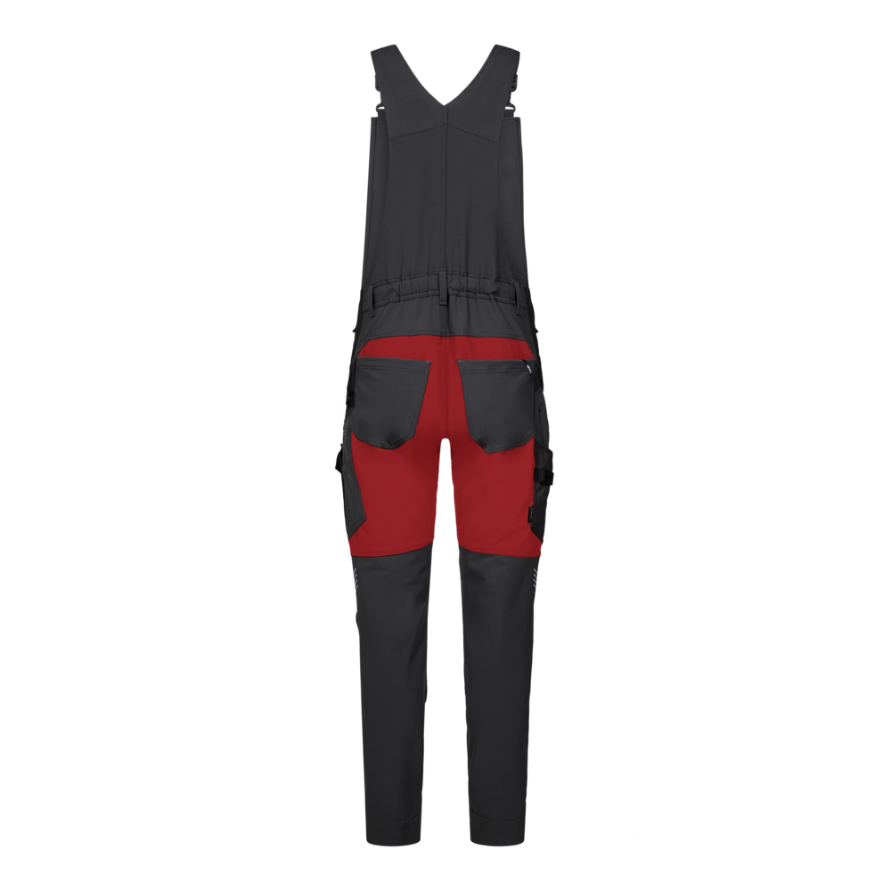 Denne overall er designet med fokus på funktionalitet, slidstyrke og komfort for at opfylde behovene i krævende arbejdsmiljøer. Den er fremstillet i et behageligt 4-vejsstrækmateriale, der giver øget fleksibilitet, mens Ripstop-stoffet i kontrastfarven sikrer slidstyrke og et moderne udtryk. Elastik i siderne samt elastik i taljen bagpå sikrer en optimal pasform, selv under bevægelse. Overallen har knælommer med CORDURA®-forstærkning og velcrolukning samt to indstillingsmuligheder for højderegulering af knæpuderne, så de kan tilpasses individuelt. Der er mange funktionelle lommer til ekstra opbevaring fx smæklomme med klap og lynlås samt en lårlomme med lynlås og en dedikeret mobiltelefonlomme på venstre lår. Overallen har desuden en forstærket tommestoklomme og en hammerstrop som gør det nemt at opbevare værktøj. Ligeledes er der påsatte knapper til hurtig montering af hængelommer. En praktisk strop med D-ring gør det muligt f.eks. at fastgøre et ID-kort sikkert og nemt. Bukserne har desuden en ekstra bred oplægning, som muliggør forlængelse af benlængden med op til 6 cm, eller 4 cm ved kort skridtlængde, så de kan tilpasses forskellige behov. Refleksprint bag på knæene øger synligheden, specielt i mørkere omgivelser. Hovedmaterialet er indfarvet med en dope dyed-proces.