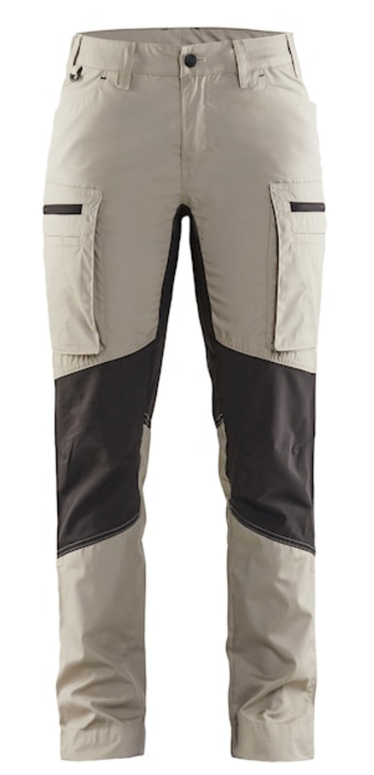 Moderne service buks i et let, men slidstærkt materiale, som er hurtigtørrende - hvilket gør buksen perfekt til indendørsarbejde, eller ude i varmt vejr. Modellen har smal pasform og elastik i livet, samt forbøjede ben for større komfort. For stor bevægelsesfrihed har buksen stretch i skridtet, på bagen og ved knæ. Buksen har pen- og knivlomme tilpasset højre- og venstrehåndet.