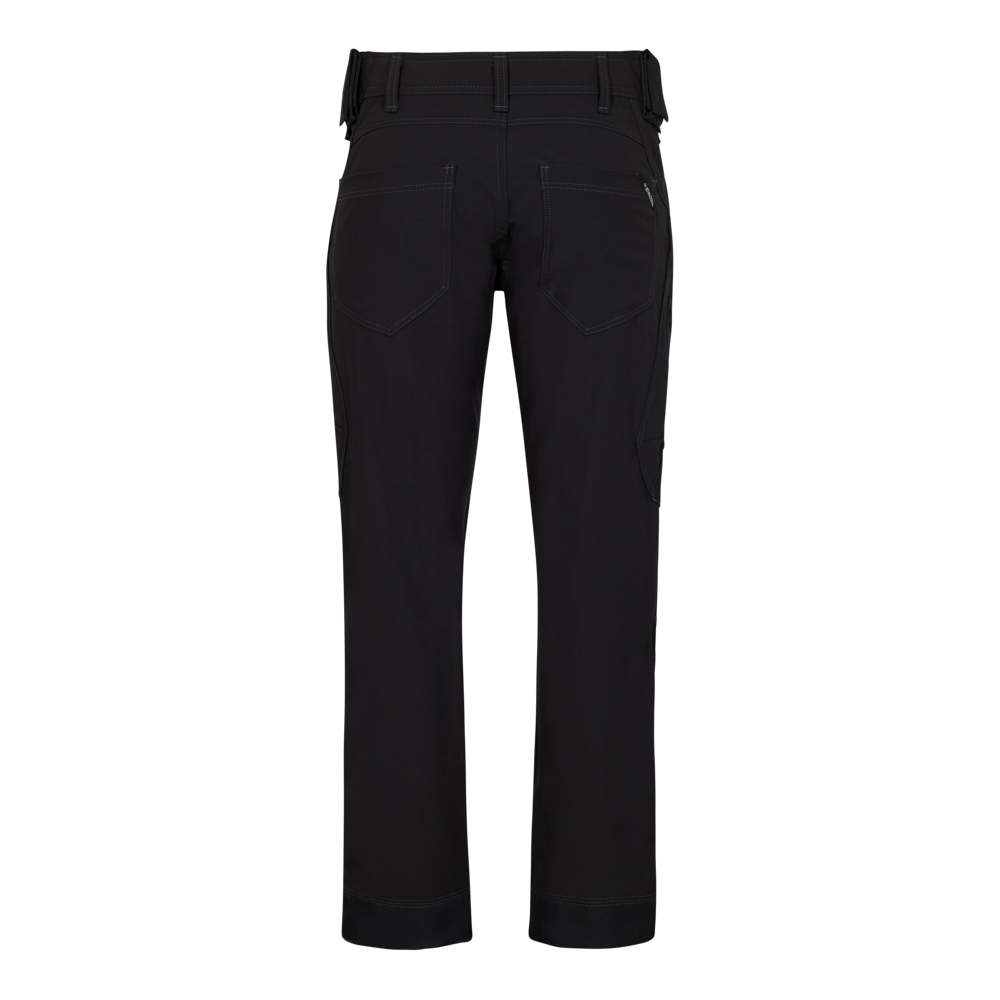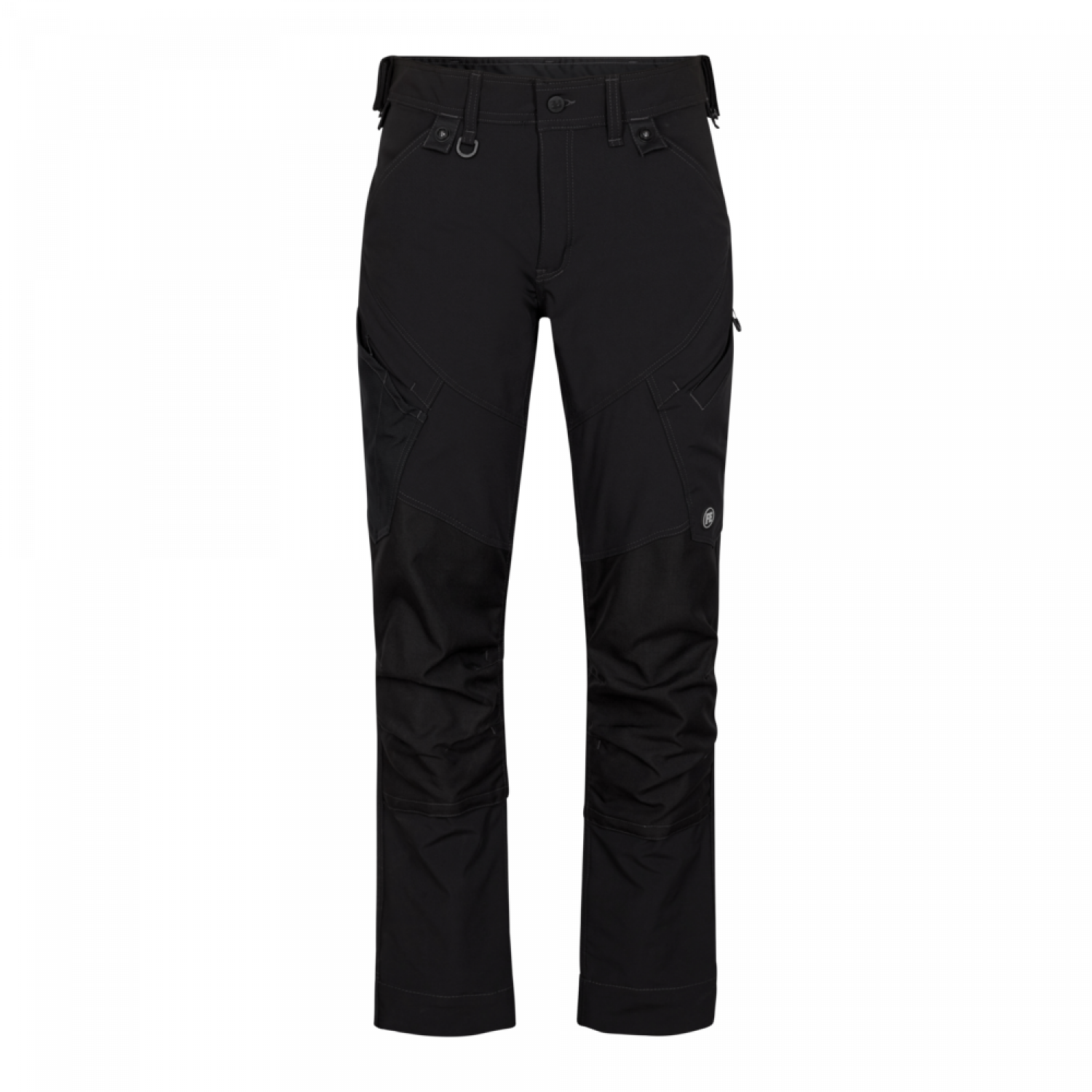 Funktionelle håndværkerbukser med en moderne pasform og mange praktiske detaljer. Optimal pasform med bl.a. ergonomisk formet knæparti. Metervaren er i en behagelig 4-vejs stræk for bedre pasform og større bevægelsesfrihed. Buksen har bomuld på indersiden for maksimal komfort. Buksen har D-ring foran til påsætning af f.eks. ID-kort. To rummelige skrålommer foran. To baglommer. To lårlommer som lukkes med lynlås. I venstre side har lårlommen en ekstra telefonlomme. I højre side har lårlomme med ekstra inddelinger. Knapper for let montering af hængelommer. To brede velcrostropper i livet for let på montering af værktøjsholder. Knæforstærkning/knælomme med velcrolukning forneden og med to indstillingsmuligheder for højderegulering af knæpuden. Knæforstærkningen er i slidstærkt CORDURA®. Bukserne har en ekstra bred oplægning, der er beregnet til at øge længden på bukserne, hvis der er brug for ekstra benlængde. En enkelt søm pilles op, og derefter er bukserne med ekstra benlængde - og stadig sømmet op.