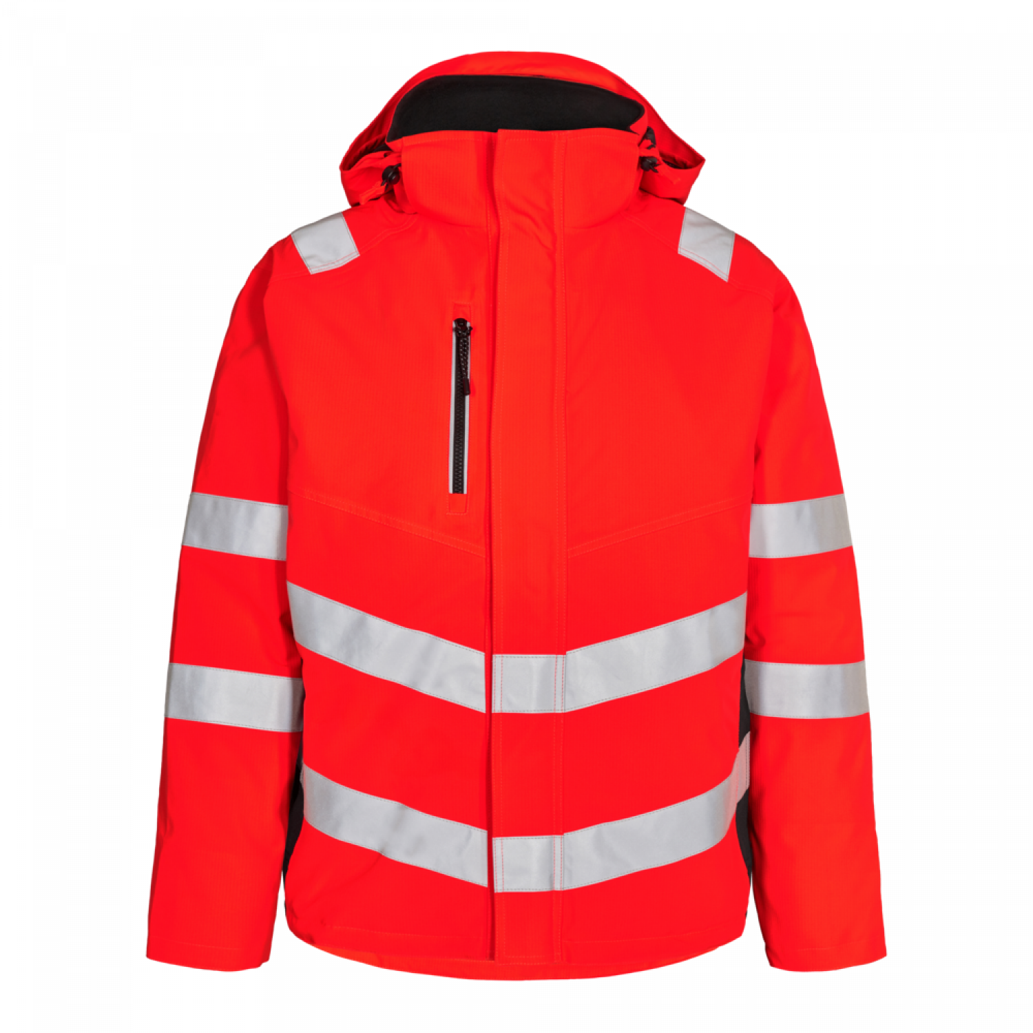 Åndbar, vand- og vindtæt vinterjakke med tapede sømme og i moderne snit. Jakken har høj hals og forlænget bagstykke. Dobbelt stolpelukning med lynlås lukning, samt velcro i front. Rummelige sidelommer, brystlomme og indvendig lomme, alle med lynlås lukning. Aftagelig hætte med reguleringsmulighed samt plads til arbejdshjelm. Regulerbart vindfang i bund, der sikre varmen i uforudsigeligt vejr. Rib ved håndled samt i kraven der formindsker risikoen for træk. Lynlås i for, der giver mulighed for tryk/broderi placering. Reflekser over skuldre, samt omkring ærmer og liv. Beklædningsklasse 3. Testet efter 50 vaske.