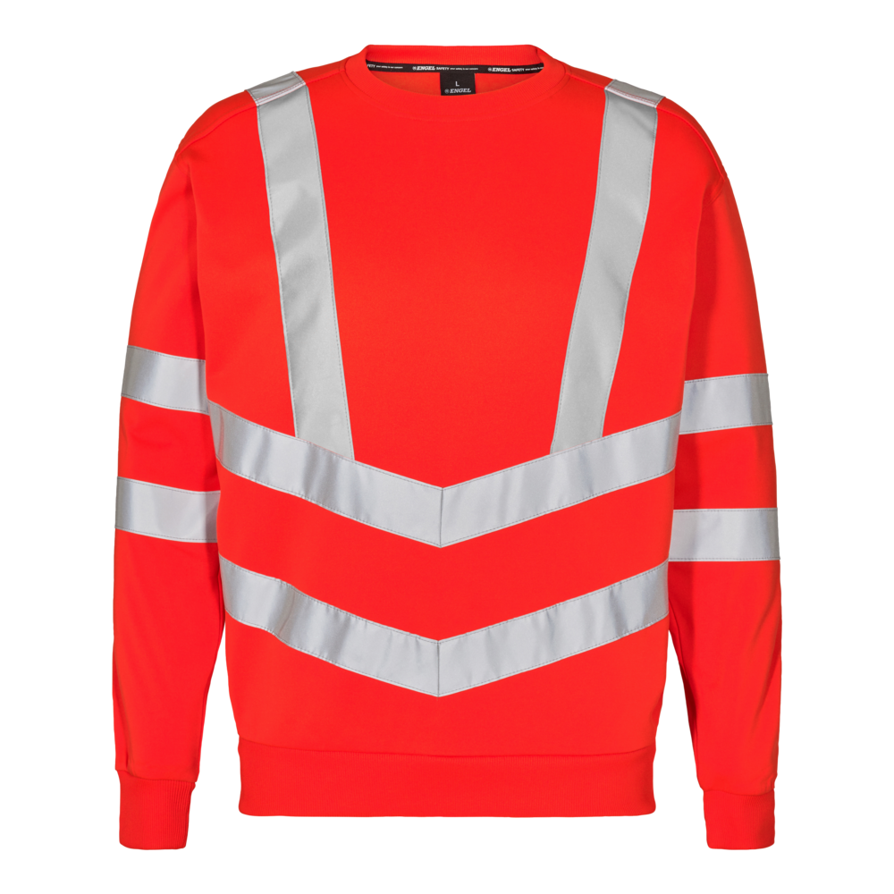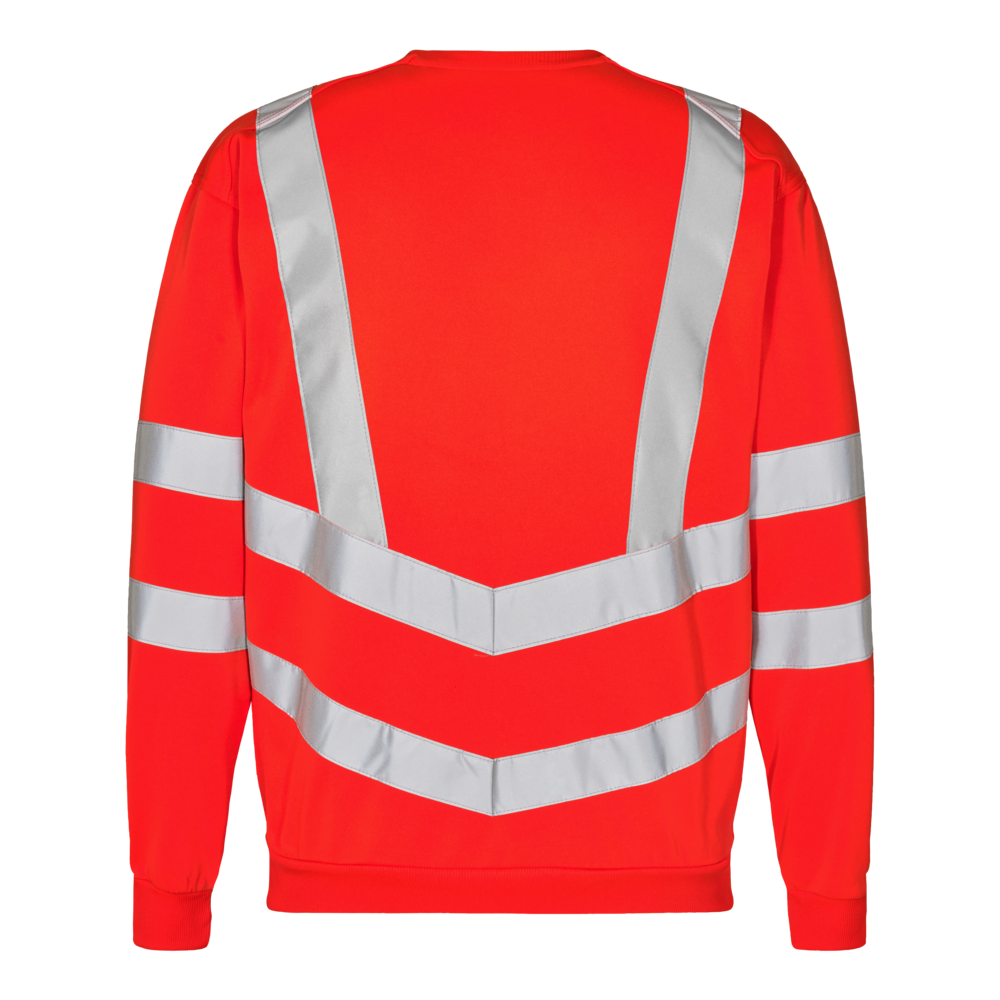 Behagelig og lækker fluorescerende sweatshirt i moderne snit. Børstet inderside som gør den blød og behagelig. Rib i hals, ærmer og bund. Strækbare reflekser over skuldre samt omkring ærmer og liv. Beklædningsklasse 3. Testet efter 25 vaske.