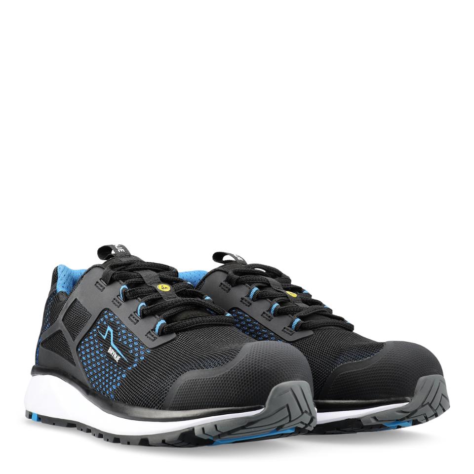 Smart og let sikkerhedssko certificeret efter de nye standarder i 2022. Overdelen består af strikket, åndbar polyester med elementer i KPU for ekstra stabilitet og styrke. At overdelen er strikket, giver en fleksibel pasform og reducerer spild i produktionen. ProNosen af KPU, et slidstærkt materiale, er godkendt efter 2022-standarden og anbefales til knælende arbejde. Gummi-ydersålen er skridhæmmende, og kombineret med en blød, stødabsorberende mellemsål i EVA giver det en komfortable og fleksibel sko. Sålen består også af en gelenk, der giver skoen stabilitet samt mindsker vrid og belastninger på hælen. Sålmønstret er designet med store knopper og brede riller, så jord, sand, vand og mudder nemt kan løbe derfra og give godt fodfæste. Indlægssålen er stødabsorberende, blød, fleksibel og åndbar og består bl.a. af upcycled PU-skum, der er skumrester fra indlægssålsproduktion. ESD-godkendt og PVC-fri.