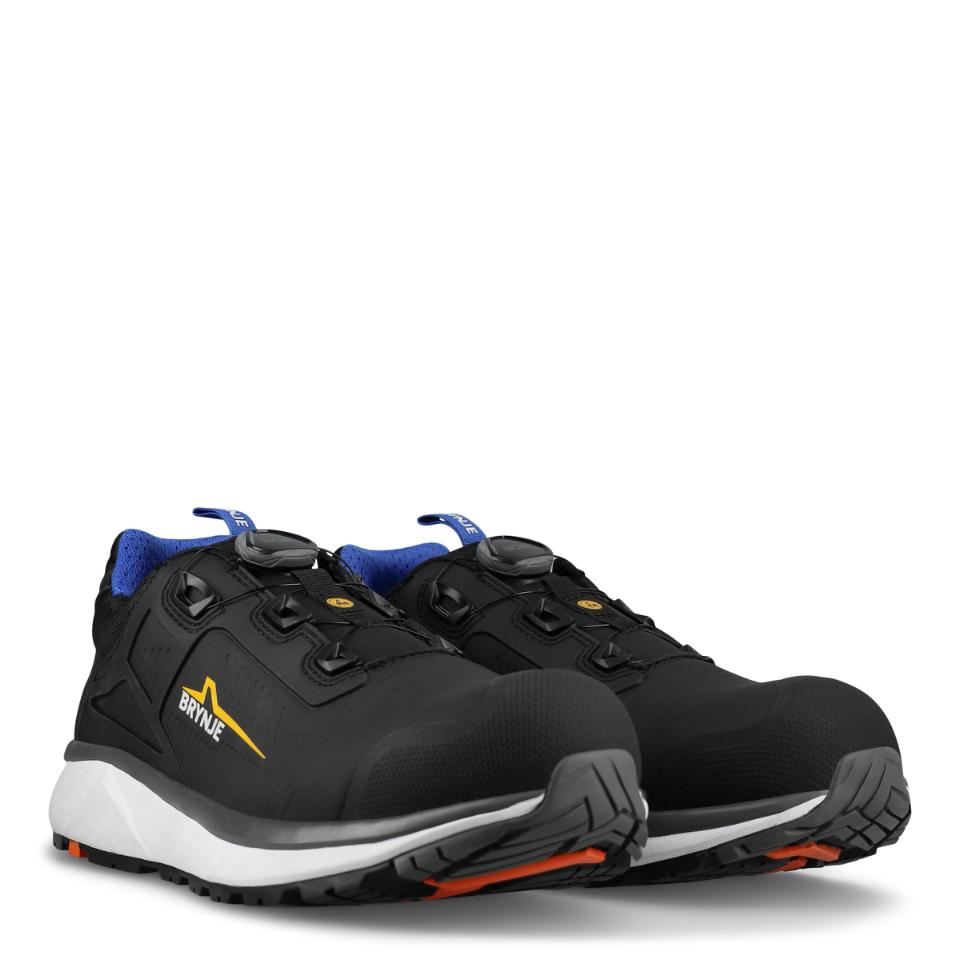 Let sikkerhedssko certificeret efter de nye standarder i 2022. Overdelen består af vandafvisende mikrofiber og elementer i KPU. Kombinationen af mikrofiber og KPU-detaljerne sørger for ekstra styrke og stabilitet ved anklerne. Skoen spændes og løsnes med det innovative BOA® Fit System, som giver et perfekt fit. ProNosen af KPU, et slidstærkt materiale, er godkendt efter 2022-standarden og anbefales til knælende arbejde. Gummi-ydersålen er skridhæmmende, og kombineret med en blød, stødabsorberende mellemsål i EVA giver det en komfortabel og fleksibel sko. Sålen består også af en gelenk, der giver skoen stabilitet og mindsker vrid og belastninger på hælen. Sålmønstret er designet med store knopper og brede riller, så jord, sand, vand og mudder nemt kan løbe derfra og give godt fodfæste. Indlægssålen er stødabsorberende, blød, fleksibel og åndbar og består bl.a. af upcycled PU-skum, der er skumrester fra indlægssålsproduktion. ESD-godkendt og PVC-fri.