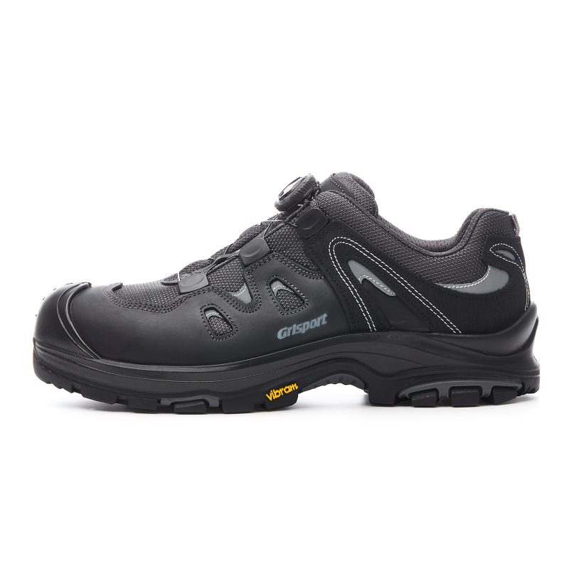 Med denne model fra Grisport, får du en slidstærk og robust sikkerhedssko. Den har en skridhæmmende og slidstærk Vibram® ydersål og en PU mellemsål, der bevarer stødabsorberingen i hele støvlens levetid. Overdelen er lavet i en kombination af fuldnarvet læder og Cordura® tekstil, der gør den slidstærk og åndbar. Den har TPU slidnæse, så den kan tåle knæliggende arbejde og BOA® Fit System, så du let komme ind og ud af dine sko.
