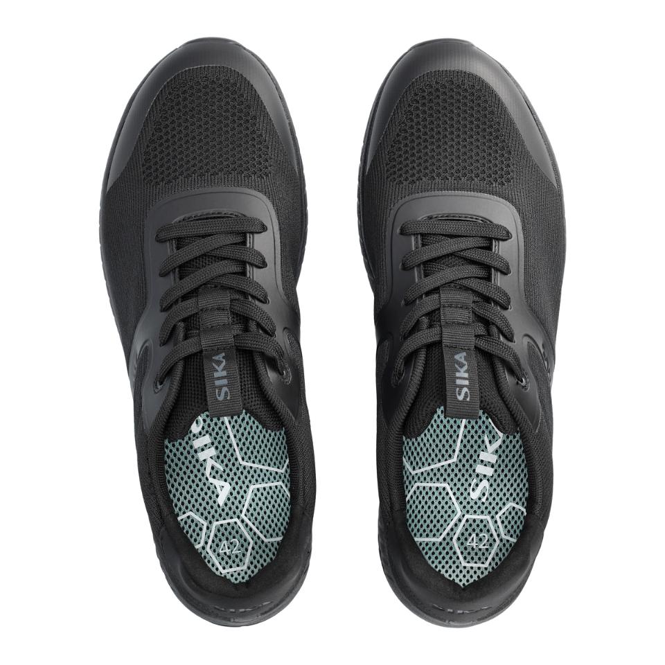 Sneaker-lignende, åndbar arbejdssko med strikket overdel til tjenere, og til dem der arbejder i hospitals- og plejesektoren. Den strikkede overdel er lavet i ét stykke for at minimere produktionsspild, og en del af garnet, som er anvendt, er Global Recycle Standard (GRS)-godkendt. Ydersålen består af den innovative teknologi SIKA HexaGrip. Sålen er lavet af slidstærkt gummi, og sålmønsteret består af en masse hexagoner, der bidrager til 360° skridsikkerhed. Blød mellemsål af EVA-skum gør skoen fleksibel, let og helt særlig stødabsorberende. Luftbobler i både mellem- og ydersål, SIKA BubbleTech, sikrer en særligt god stødabsorbering og sender energien fra hvert skridt tilbage og giver energi nok til hele arbejdsdagen.