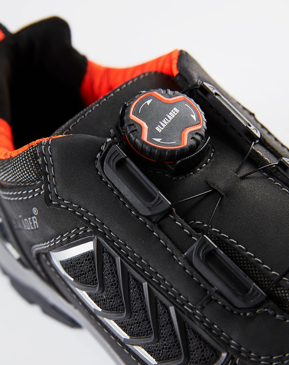En slidstærk sikkerhedssko i høj kvalitet med Freelock lukning fra Blåkläders Elite-kollektion, der er lavet af et slidstærkt og glat mikrofiber materiale. Skoen beskytter foden på den bedste måde med tåværn af aluminium, blødt sømværn af tekstil samt TPU-forstærket tå- og hælpartier. Refleksdetaljer på siden, såvel som hælen, gør dig og dine sko synlige, når det er nødvendigt. Skoens indersål er lavet af et anatomisk blødt PU-materiale, der har god fugtabsorbering og anti-lugt evne. Velegnet til arbejde indenfor bygge og anlæg, blikkenslagere, elektrikere samt reparation og service. Damelæst er anvendt til str. 35-39.