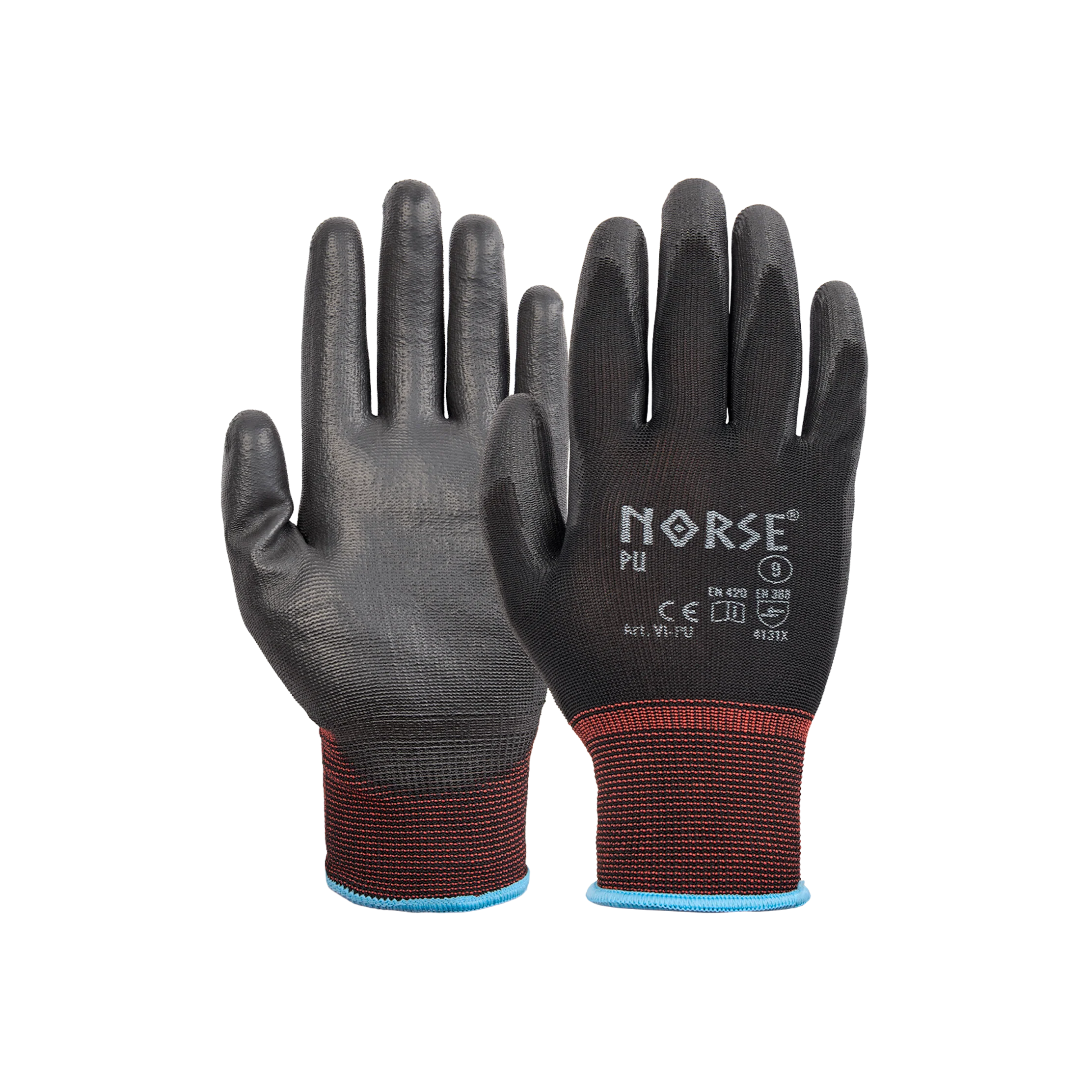 PU er en sømløs montagehandske med ribkrave, med polyurethanbelægning på håndflade og fingre og glat finish. Samtidig er handsken strikket af polyester, hvilket sikrer en behagelig pasform. NORSE PU handsken er en tætsiddende montagehandske, der sikrer, at du har en god føling med håndflade og fingre, og har derfor et bredt anvendelsesområde, hvor præcision er påkrævet med det objekt, du arbejder med.