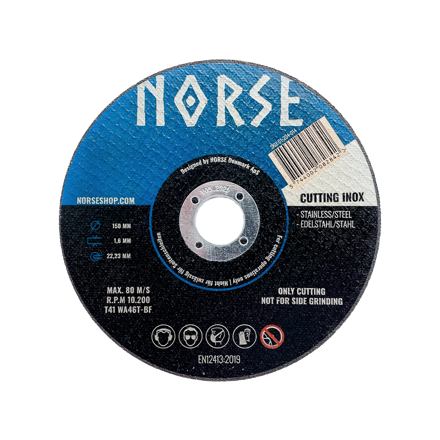 NORSE Cutting disc is a cutting disc that is particularly suitable for cutting metal and stainless steel. Cutting discs for metal are manufactured using Aluminium Oxide abrasive grit with fiberglass reinforcing and resin bonded to provide optimal cutting performance. The 400mm cutting disc is specially developed to power tools such as Husqvarna K970 og Stihl TS 800. They must never be used for grinding, and must always be presented at an angle of 90º. The cutting disc is also available in several different sizes.